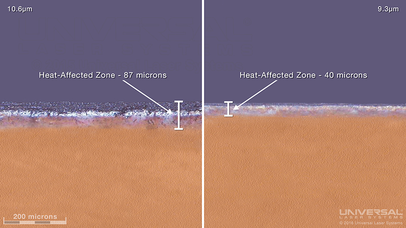ほとんどのユニバーサルレーザーは2つの異なる波長を持っています。(10.6μmのと9.3μm)